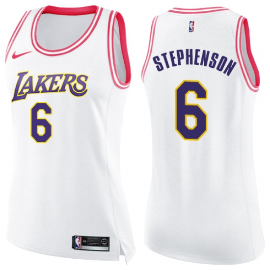 >Women's Nike Los Angeles Lakers #6 Lance Stephenson Swingman White Pink Fashion NBA Jersey