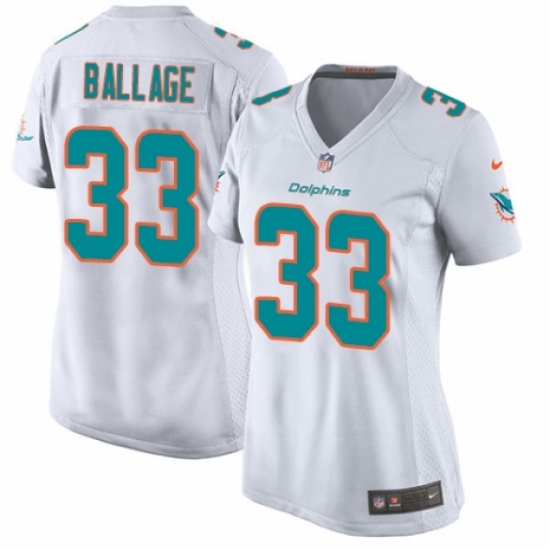 >Women's Nike Miami Dolphins #33 Kalen Ballage Game White NFL Jersey