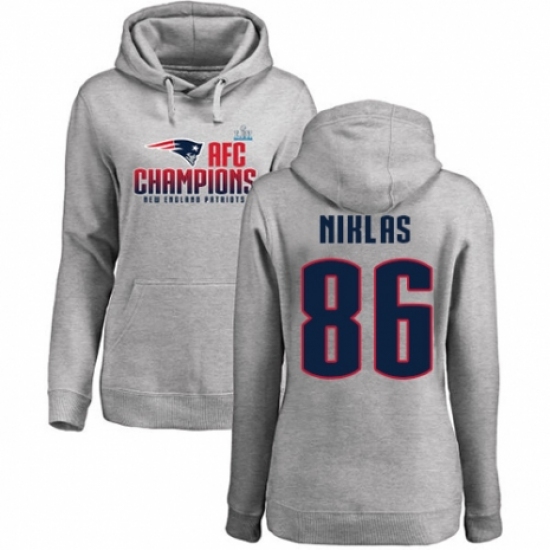 Women's Nike New England Patriots #86 Troy Niklas Heather Gray 2017 AFC Champions Pullover Hoodie