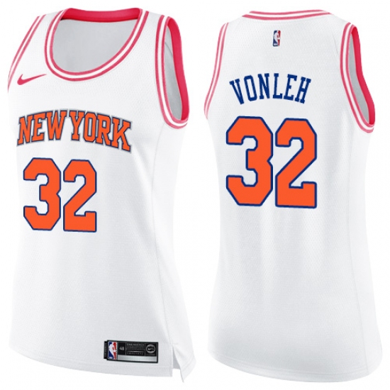 Women's Nike New York Knicks #32 Noah Vonleh Swingman White Pink Fashion NBA Jersey