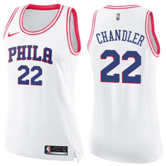Women's Nike Philadelphia 76ers #22 Wilson Chandler Swingman White Pink Fashion NBA Jersey