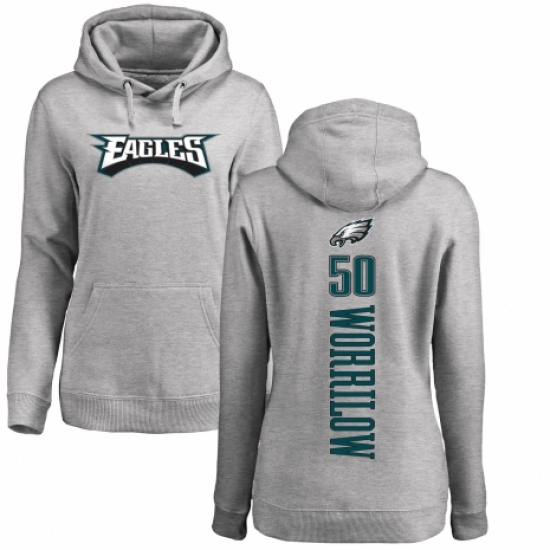 >Women's Nike Philadelphia Eagles #50 Paul Worrilow Ash Backer Pullover Hoodie