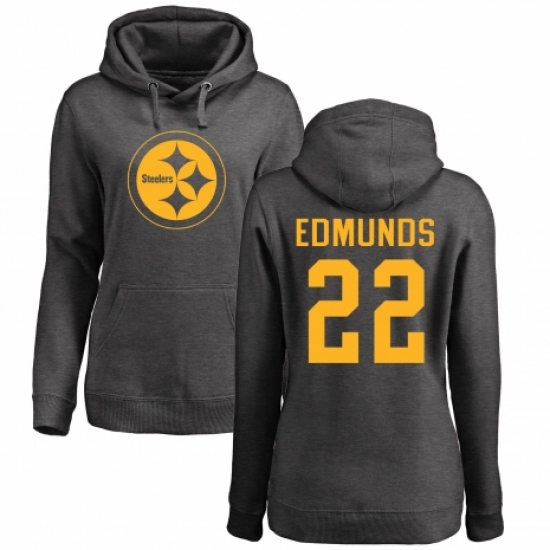 >Women's Nike Pittsburgh Steelers #22 Terrell Edmunds Ash One Color Pullover Hoodie