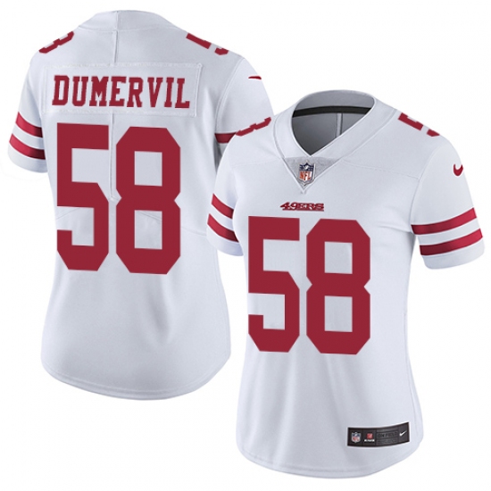 Home>NFL>San Francisco 49ers>Elvis Dumervil>Women's Nike San Francisco 49ers #58 Elvis Dumervil Elite White NFL Jersey