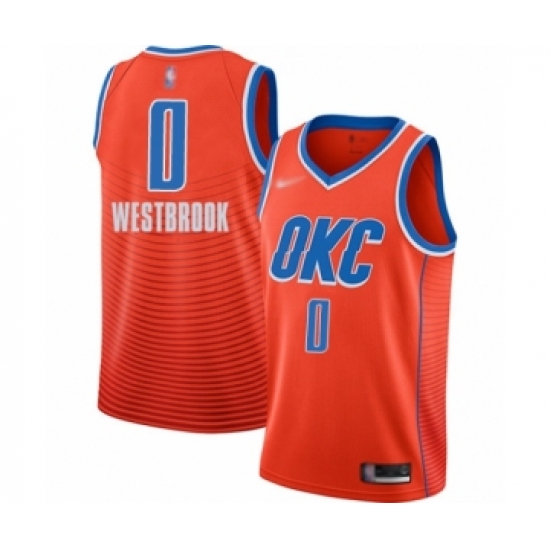 Men's Nike Oklahoma City Thunder #0 Russell Westbrook Orange Swingman Jersey - Earned Edition