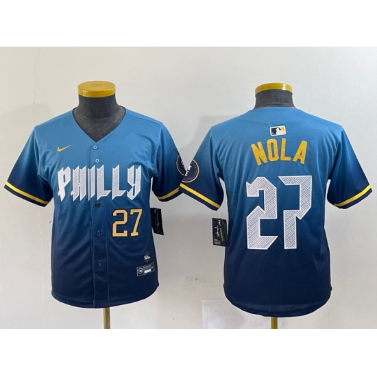 Womens Philadelphia Phillies #27 Aaron Nola Blue 2024 City Connect Limited Stitched Jersey
