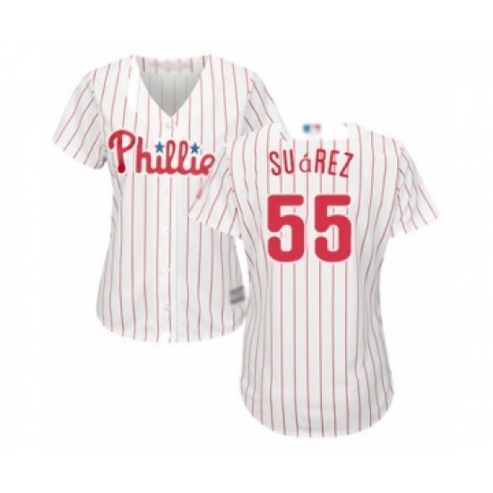 Women's Philadelphia Phillies #55 Ranger Suarez Authentic White Red Strip Home Cool Base Baseball Player Jersey