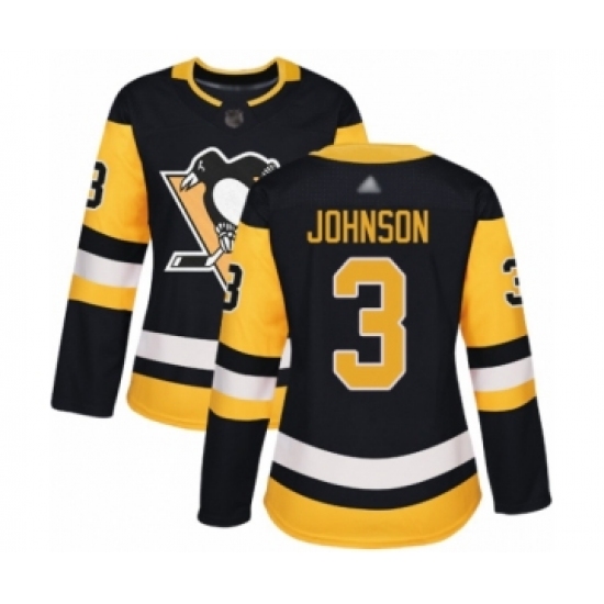 Women's Pittsburgh Penguins #3 Jack Johnson Authentic Black Home Hockey Jersey