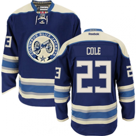 >Women's Reebok Columbus Blue Jackets #23 Ian Cole Authentic Navy Blue Third NHL Jersey