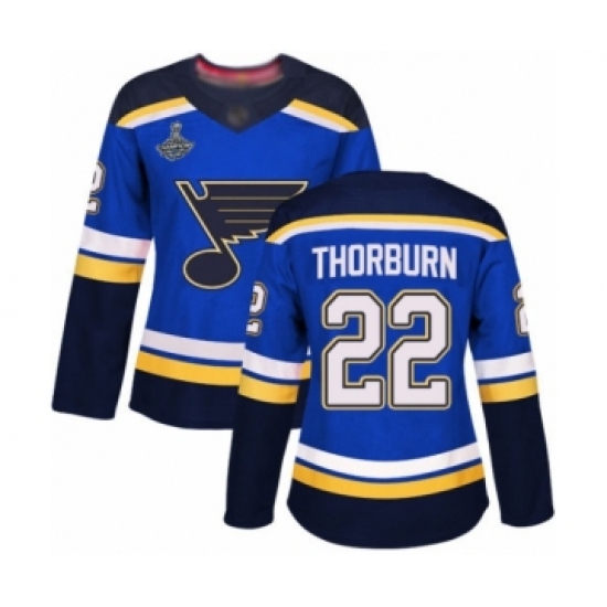 Women's St. Louis Blues #22 Chris Thorburn Authentic Royal Blue Home 2019 Stanley Cup Champions Hockey Jersey