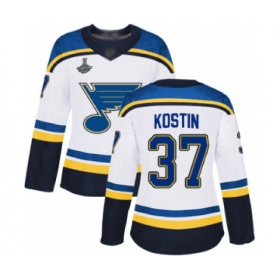 Women's St. Louis Blues #37 Klim Kostin Authentic White Away 2019 Stanley Cup Champions Hockey Jersey