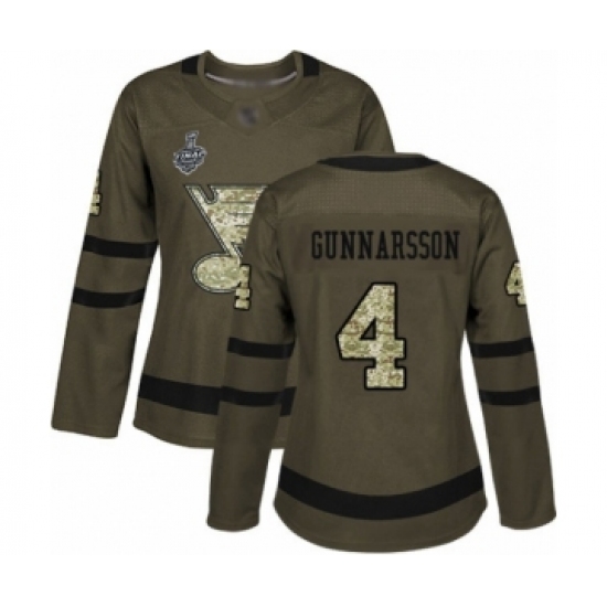 >Women's St. Louis Blues #4 Carl Gunnarsson Authentic Green Salute to Service 2019 Stanley Cup Final Bound Hockey Jersey