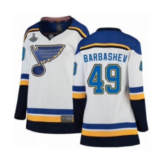 Women's St. Louis Blues #49 Ivan Barbashev Fanatics Branded White Away Breakaway 2019 Stanley Cup Champions Hockey Jersey