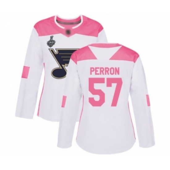 Women's St. Louis Blues #57 David Perron Authentic White Pink Fashion 2019 Stanley Cup Final Bound Hockey Jersey