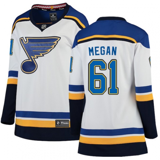 Women's St. Louis Blues #61 Wade Megan Fanatics Branded White Away Breakaway NHL Jerse