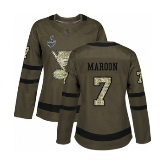 Women's St. Louis Blues #7 Patrick Maroon Authentic Green Salute to Service 2019 Stanley Cup Final Bound Hockey Jersey