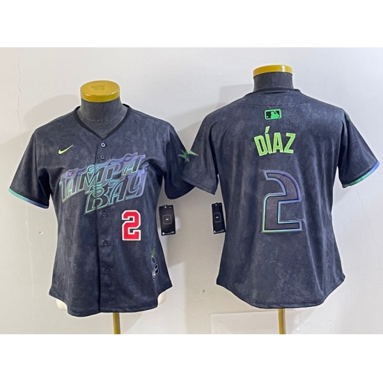>Women's Tampa Bay Rays #2 Yandy Diaz Charcoal 2024 City Connect Player Number Limited Cool Base Jerseys