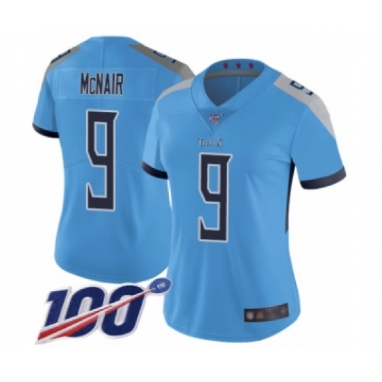 >Women's Tennessee Titans #9 Steve McNair Light Blue Alternate Vapor Untouchable Limited Player 100th Season Football Jersey