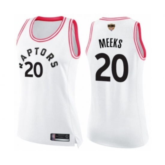 >Women's Toronto Raptors #20 Jodie Meeks Swingman White Pink Fashion 2019 Basketball Finals Bound Jersey