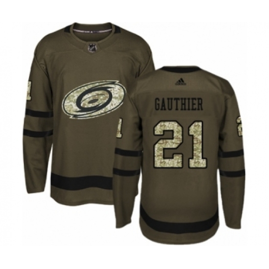 Men's Adidas Carolina Hurricanes #21 Julien Gauthier Authentic Green Salute to Service NHL Jersey