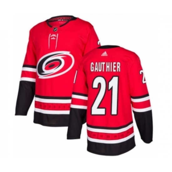 >Youth Adidas Carolina Hurricanes #21 Julien Gauthier Premier Red Home NHL Jersey