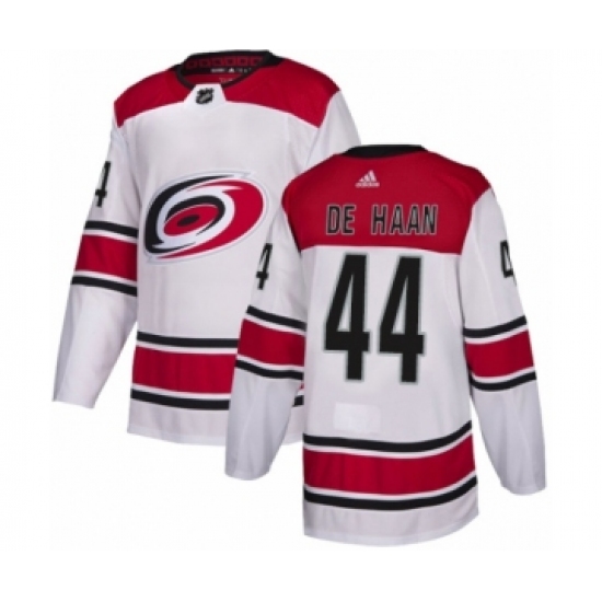 Youth Adidas Carolina Hurricanes #44 Calvin De Haan Authentic White Away NHL Jersey