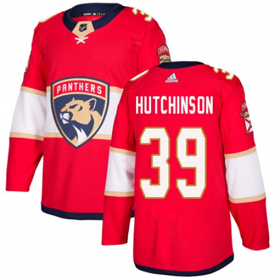 Men's Florida Panthers #39 Michael Hutchinson Authentic Red Home Fanatics Branded Breakaway NHL Jersey