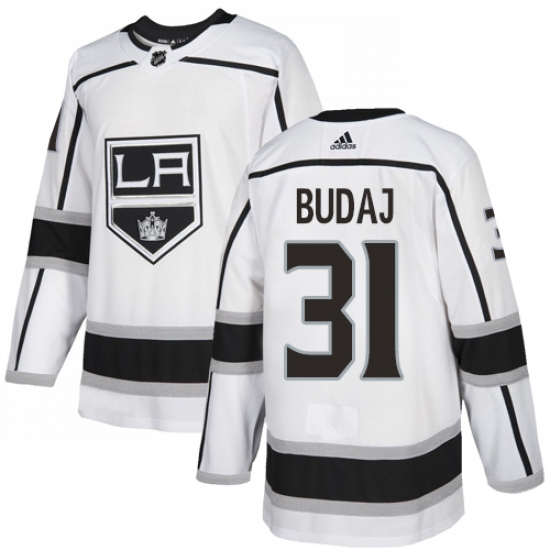 Youth Adidas Los Angeles Kings #31 Peter Budaj Authentic White Away NHL Jersey