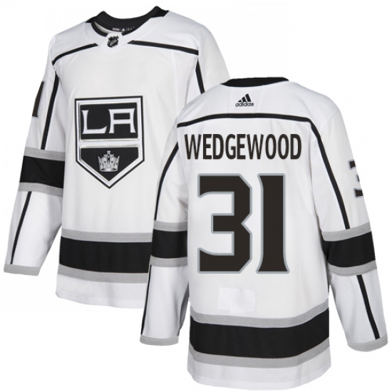 >Youth Adidas Los Angeles Kings #31 Scott Wedgewood Authentic White Away NHL Jersey