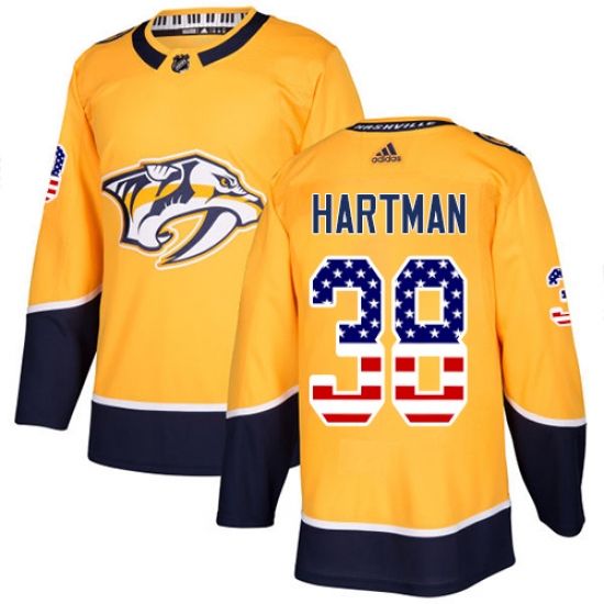 >Youth Adidas Nashville Predators #38 Ryan Hartman Authentic Gold USA Flag Fashion NHL Jersey
