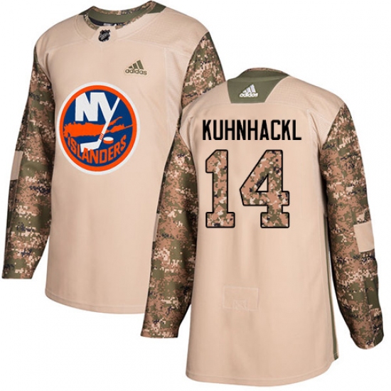 Youth Adidas New York Islanders #14 Tom Kuhnhackl Authentic Camo Veterans Day Practice NHL Jersey