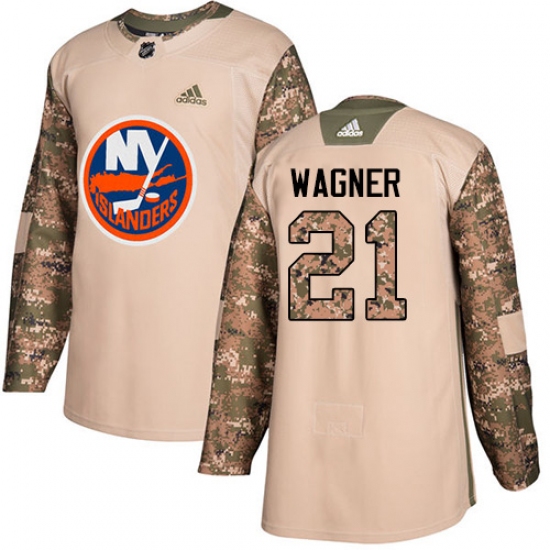 >Youth Adidas New York Islanders #21 Chris Wagner Authentic Camo Veterans Day Practice NHL Jersey