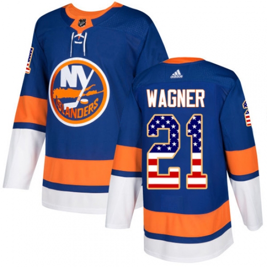 >Youth Adidas New York Islanders #21 Chris Wagner Authentic Royal Blue USA Flag Fashion NHL Jersey