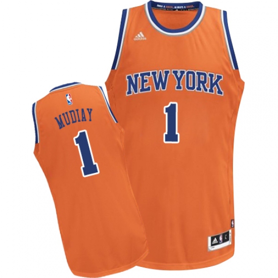 Home>NBA>New York Knicks>Emmanuel Mudiay>Youth Adidas New York Knicks #1 Emmanuel Mudiay Swingman Orange Alternate NBA Jersey