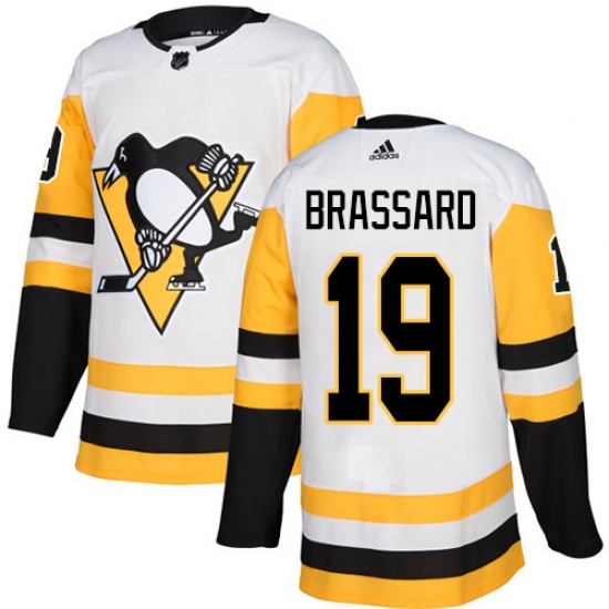 >Youth Adidas Pittsburgh Penguins #19 Derick Brassard Authentic White Away NHL Jersey