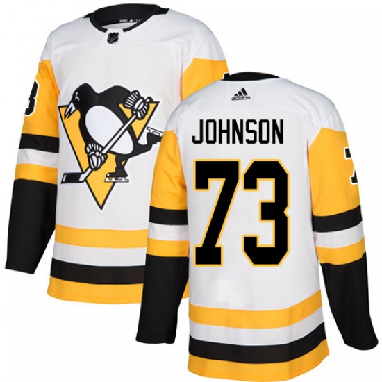 >Youth Adidas Pittsburgh Penguins #73 Jack Johnson Authentic White Away NHL Jersey