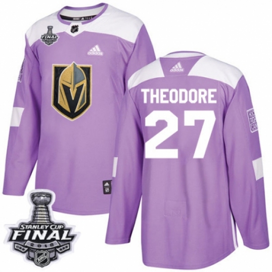 Women's Adidas Vegas Golden Knights #27 Shea Theodore Authentic Purple Fights Cancer Practice 2018 Stanley Cup Final NHL Jersey