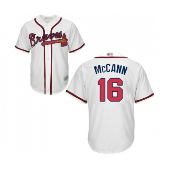 >Youth Atlanta Braves #16 Brian McCann Replica White Home Cool Base Baseball Jersey