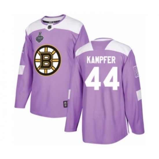>Youth Boston Bruins #44 Steven Kampfer Authentic Purple Fights Cancer Practice 2019 Stanley Cup Final Bound Hockey Jersey