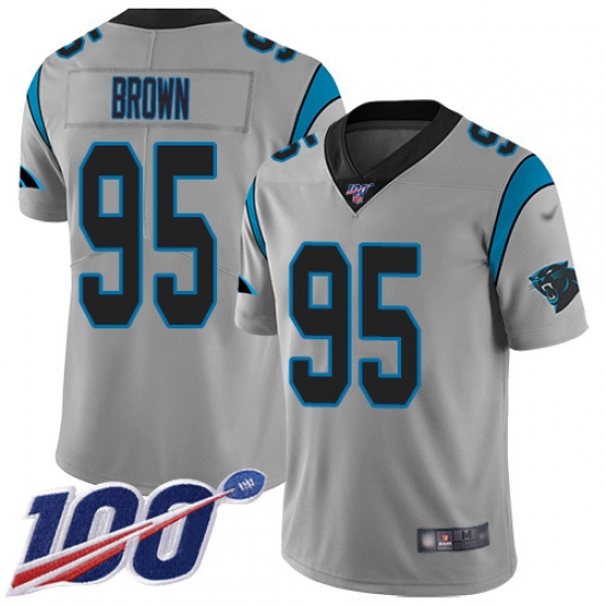 >Youth Carolina Panthers #95 Derrick Brown Silver Stitched NFL Limited Inverted Legend 100th Season Jersey