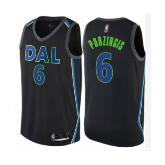 >Youth Dallas Mavericks #6 Kristaps Porzingis Swingman Black Basketball Jersey - City Edition