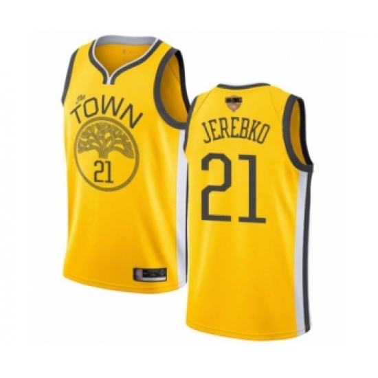 >Youth Golden State Warriors #21 Jonas Jerebko Yellow Swingman 2019 Basketball Finals Bound Jersey - Earned Edition