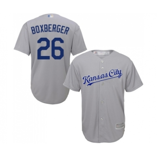 >Youth Kansas City Royals #26 Brad Boxberger Replica Grey Road Cool Base Baseball Jersey