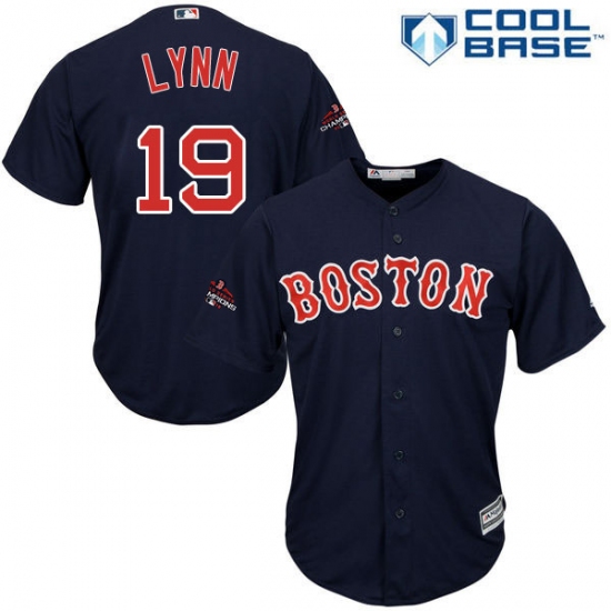 Youth Majestic Boston Red Sox #19 Fred Lynn Authentic Navy Blue Alternate Road Cool Base 2018 World Series Champions MLB Jersey