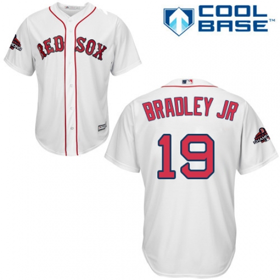 Youth Majestic Boston Red Sox #19 Jackie Bradley Jr Authentic White Home Cool Base 2018 World Series Champions MLB Jersey