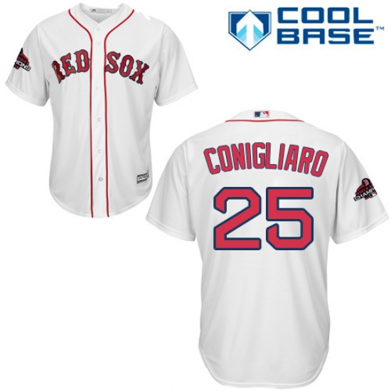 >Youth Majestic Boston Red Sox #25 Tony Conigliaro Authentic White Home Cool Base 2018 World Series Champions MLB Jersey