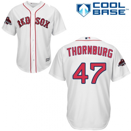 Men's Majestic Boston Red Sox #47 Tyler Thornburg White Home Flex Base Authentic Collection 2018 World Series Champions MLB Jersey