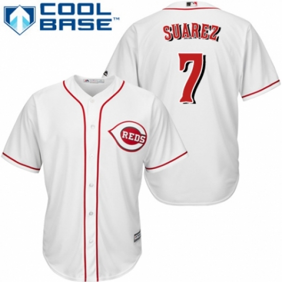 Youth Majestic Cincinnati Reds #7 Eugenio Suarez Authentic White Home Cool Base MLB Jersey
