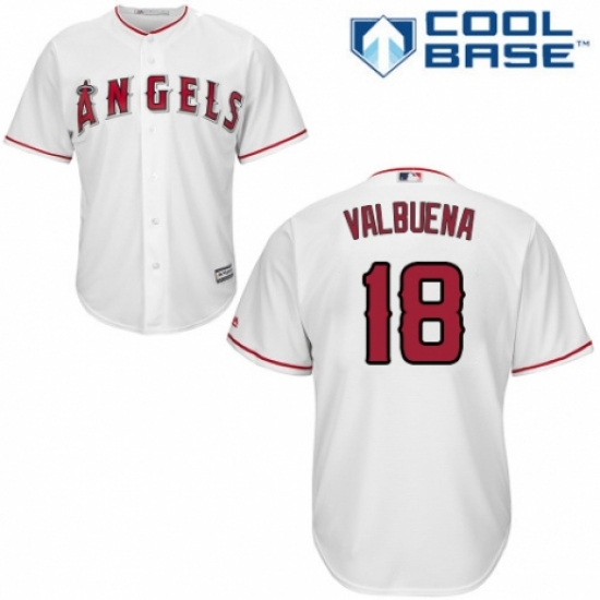 >Youth Majestic Los Angeles Angels of Anaheim #18 Luis Valbuena Replica White Home Cool Base MLB Jersey