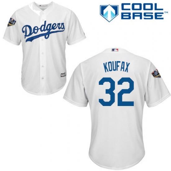 Youth Majestic Los Angeles Dodgers #32 Sandy Koufax Authentic White Home Cool Base 2018 World Series MLB Jersey